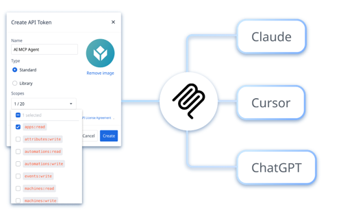 • Connect your preferred large language models (LLMs) with production processes and real-time data from production